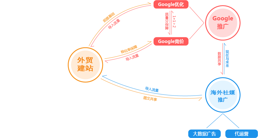 重庆外贸推广公司为您提供全面的“整合”方案,为您的企业提供全生命周期的精细化服务和咨询。为此,我们搭建了从广告投放到SEO优化,从内容运营到网站开发,从品牌策划到电商运营的近100人的团队,组成了一家集全球渠道资源、人才资源、技术资源为一体的数字营销机构,为您一站式解决出海难题,实现品牌全球推广!